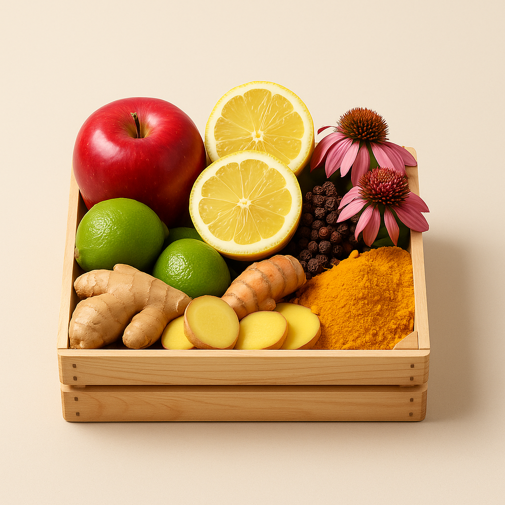 Ingver je korenina z dolgo tradicijo v azijskih in evropskih kulturah. Vsebuje spojino gingerol, ki mu daje značilno pikantnost in toplino. Poleg tega je vir vitamina C, vitamina B6, magnezija in kalija. Ljudje ga tradicionalno povezujejo s poživljajočimi zimskimi napitki in z občutkom podpore v hladnejših dneh.